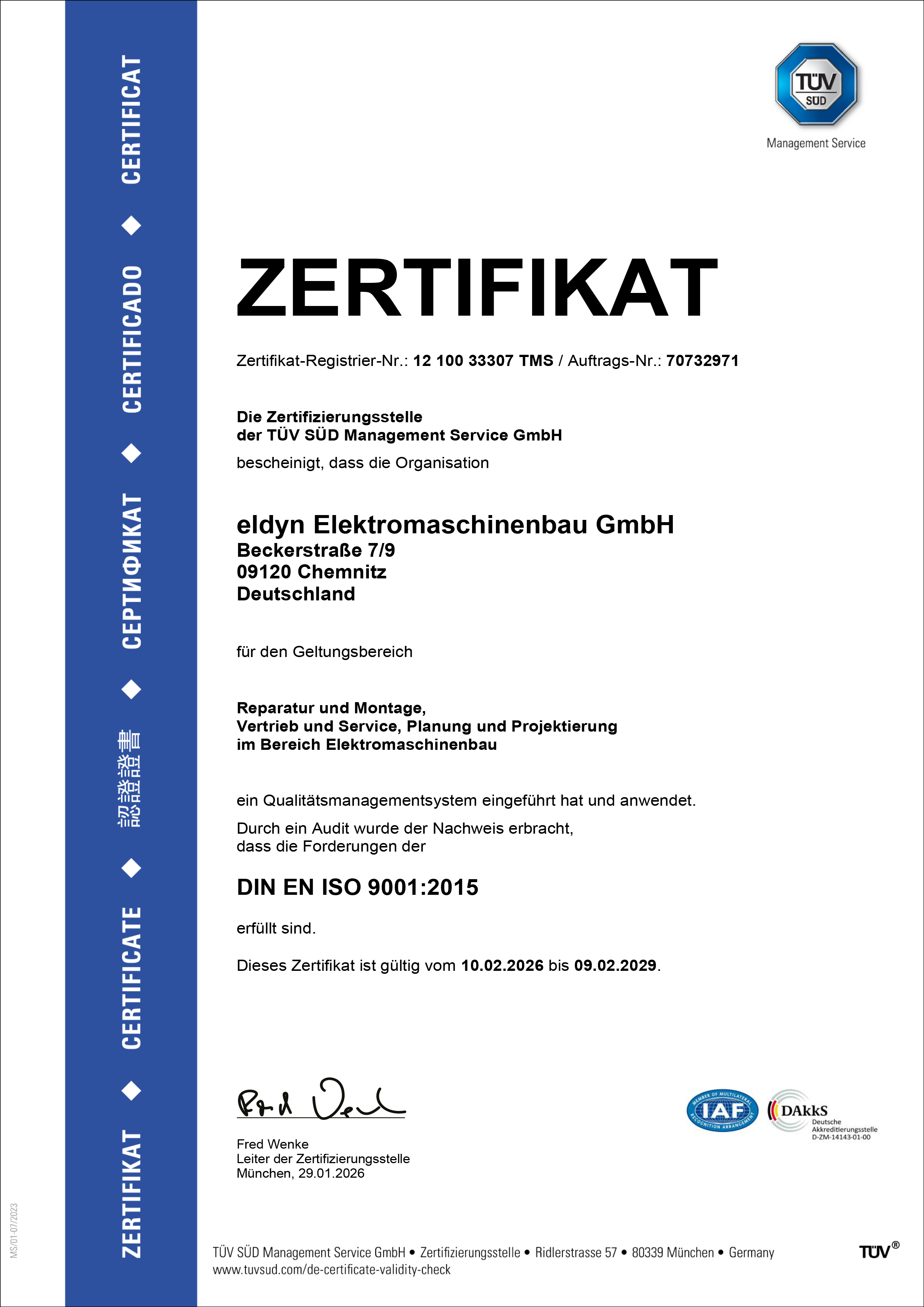 Wir sind zertifiziert nach DIN ISO 9001
